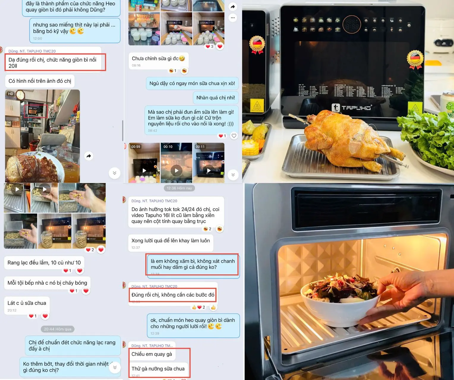 Người dùng đánh giá rất cao TAPUHO TMC20 PrimeAI nhờ khả năng nấu nướng ngon, nhanh và ít phải can thiệp thủ công. Trong quá trình trải nghiệm thực tế, nhiều gia đình phản hồi rằng các món thịt quay giòn bì, gà nướng nguyên con hay heo quay da giòn đều đạt chuẩn “vàng đều, giòn chuẩn, chín sâu bên trong” nhờ trục quay 360° và dải nhiệt rộng của máy.