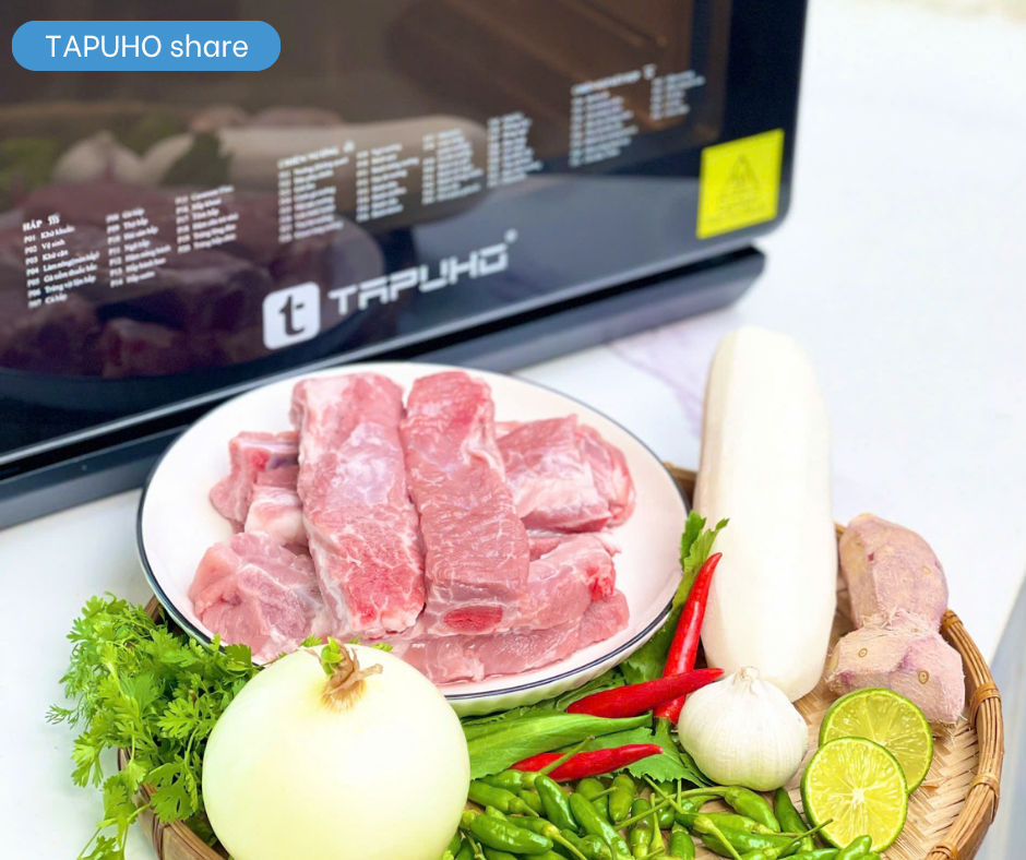 Sau khi hoàn tất bước sơ chế nguyên liệu, bạn có thể bắt đầu chế biến món tháp sườn cay một cách đơn giản nhờ các chế độ nấu thông minh của nồi TAPUHO TMC20 PRIMEAI. Thiết bị giúp kiểm soát nhiệt độ chính xác, giữ nước hầm trong và làm mềm sườn mà không cần canh bếp liên tục.