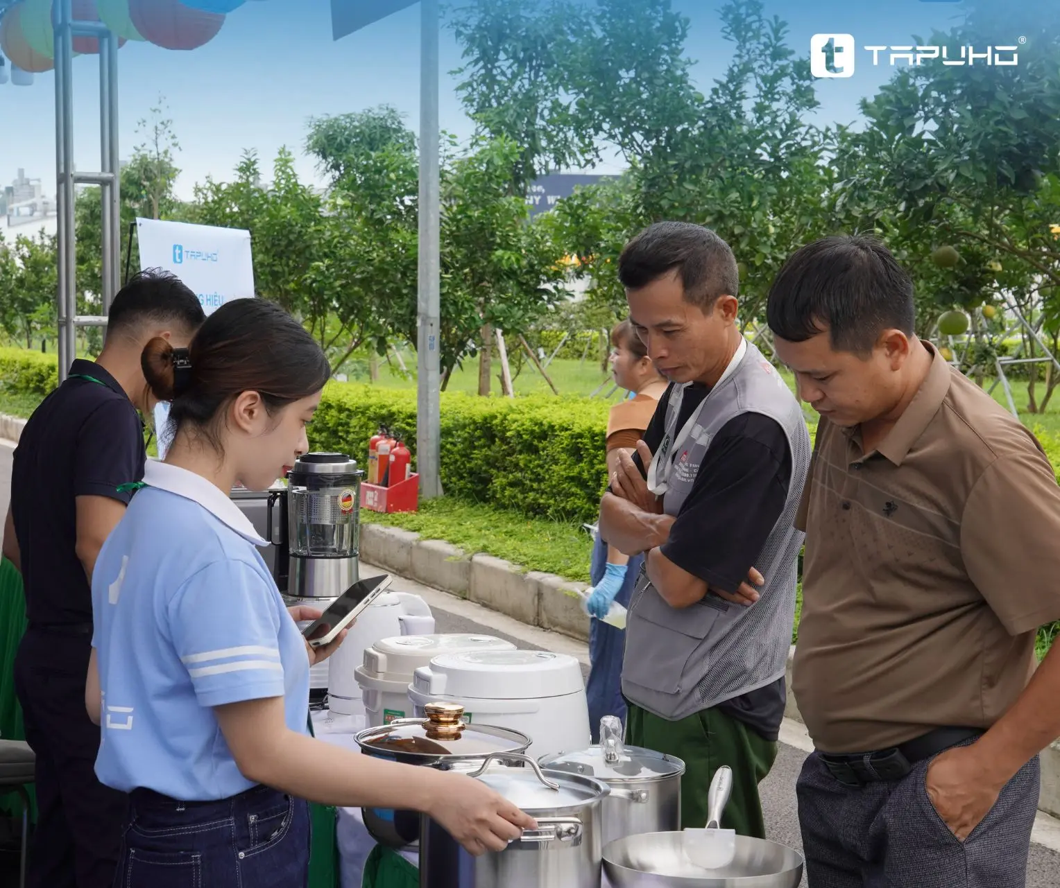 Nhiều công nhân viên đã dừng chân trải nghiệm sản phẩm, tìm hiểu tính năng và nhận các phần quà mini game hấp dẫn từ TAPUHO. Không chỉ mang đến các thiết bị gia dụng cao cấp, gian hàng còn góp phần lan tỏa thông điệp “Sống hiện đại – Nấu yêu thương”, đúng với tinh thần mà TAPUHO.
