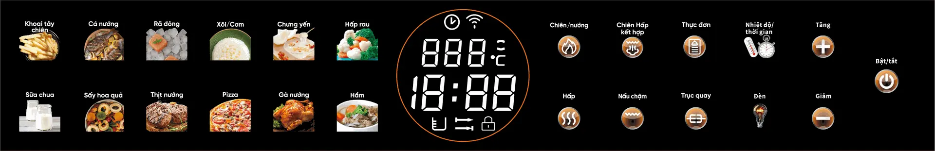 Hấp – Chiên không dầu – Chiên hấp kết hợp – Hầm – Nấu chậm, cùng hơn 80 chương trình cài sẵn.