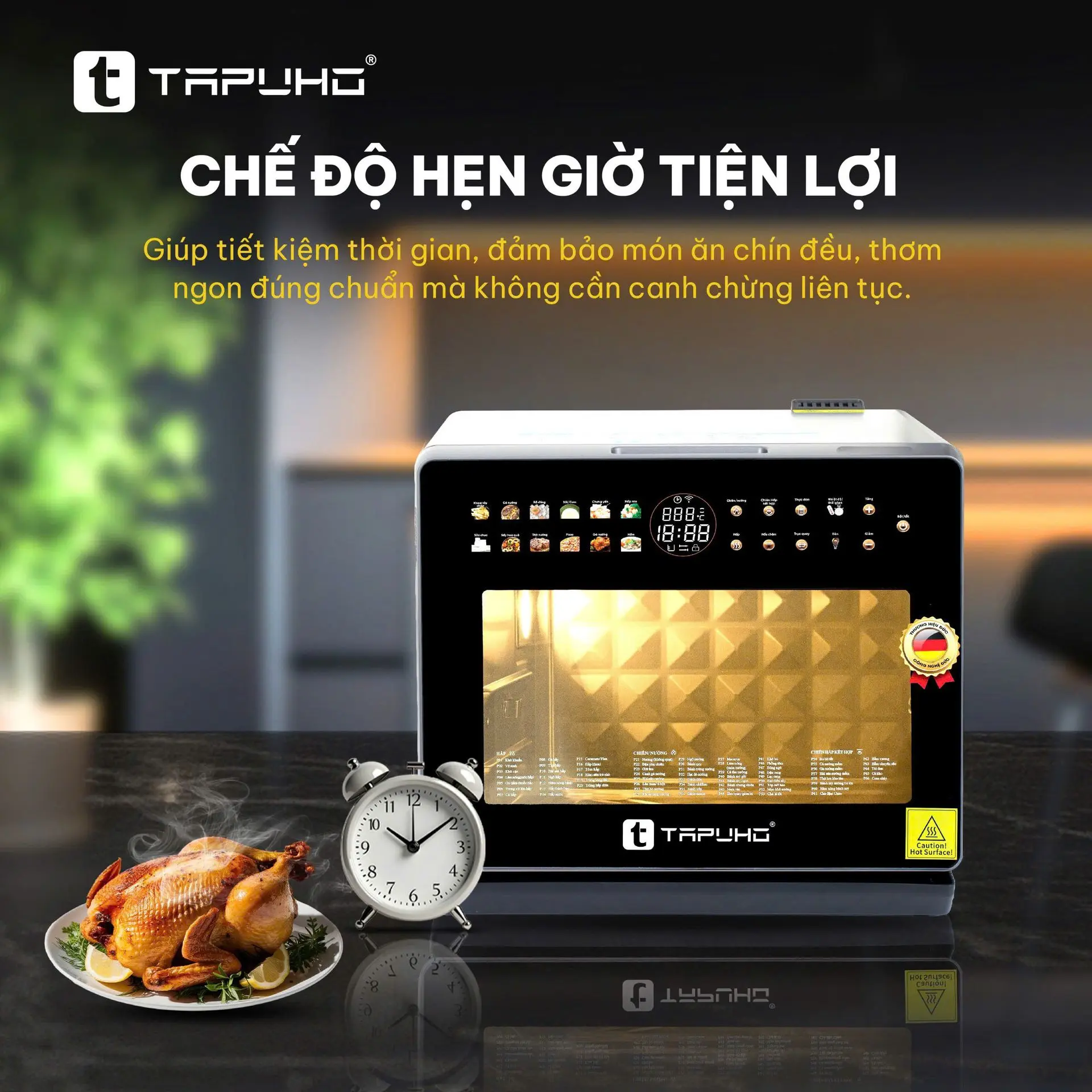 Chỉ với một chiếc TAPUHO TMC20 PrimeAI, bạn có thể rã đông, làm nóng, hấp, nướng – tất cả trong cùng một thiết bị, hoàn toàn yên tâm về độ an toàn, tiện lợi và chất lượng món ăn.