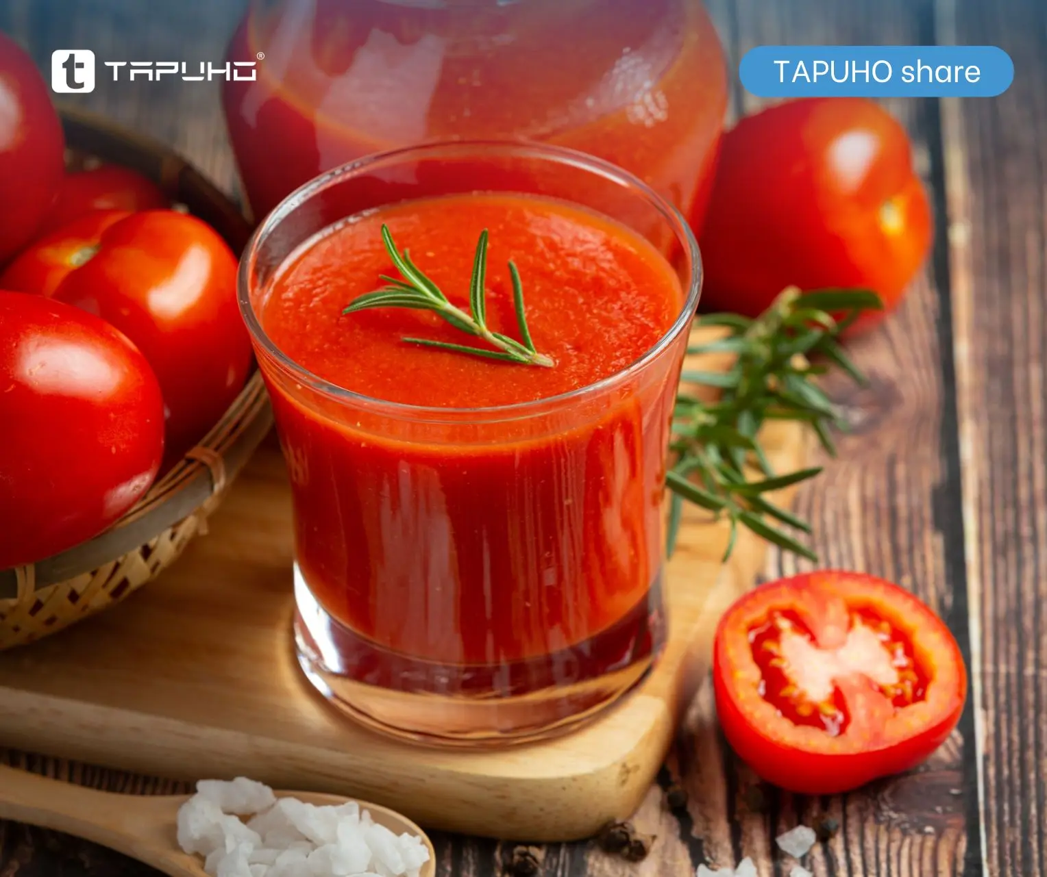 Cà chua là loại nước ép không còn xa lạ với những người đạo nước ép. Cà chua chứa nhiều vitamin C, A, E cùng lycopene – một chất chống oxy hóa mạnh mẽ giúp làm chậm quá trình lão hóa, ngăn ngừa nếp nhăn và bảo vệ da khỏi tác hại của ánh nắng mặt trời. Uống nước ép cà chua thường xuyên không chỉ giúp da sáng mịn, hồng hào mà còn hỗ trợ thanh lọc cơ thể, tốt cho hệ tiêu hóa và tim mạch.