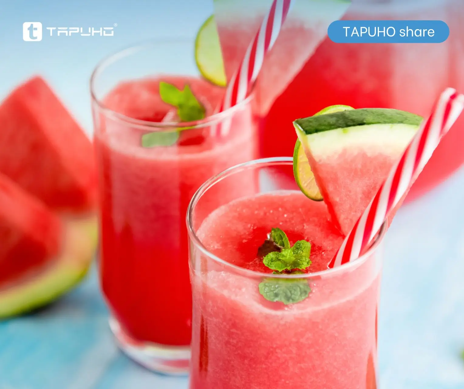 Công dụng: Dưa hấu giúp cấp nước, thanh nhiệt; bạc hà tạo cảm giác mát lạnh; chanh giàu vitamin C, tăng sức đề kháng.