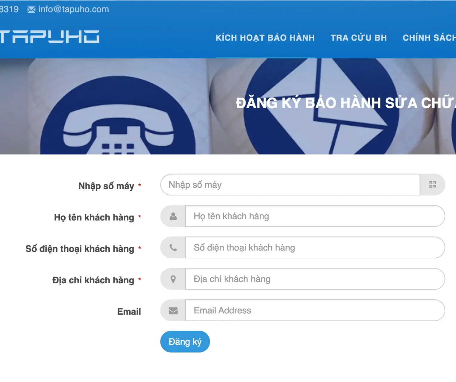 Đăng ký bảo hành tại: https://baohanh.tapuho.com/