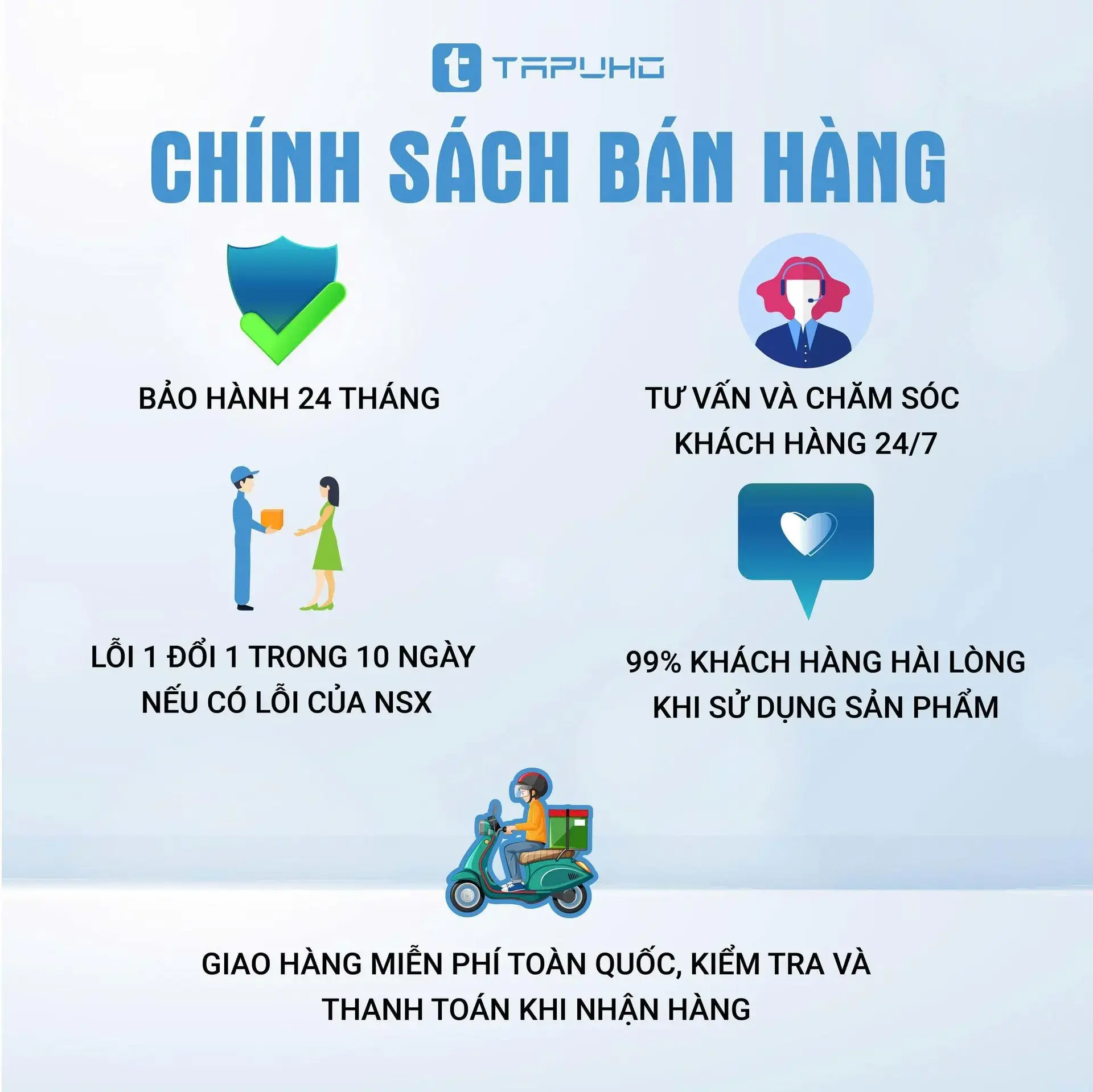 Bên cạnh đó, TAPUHO áp dụng chính sách bảo hành toàn quốc, thông qua hệ thống phân phối và các trung tâm bảo hành chính hãng, giúp khách hàng dễ dàng tiếp cận dịch vụ ở bất kỳ đâu.