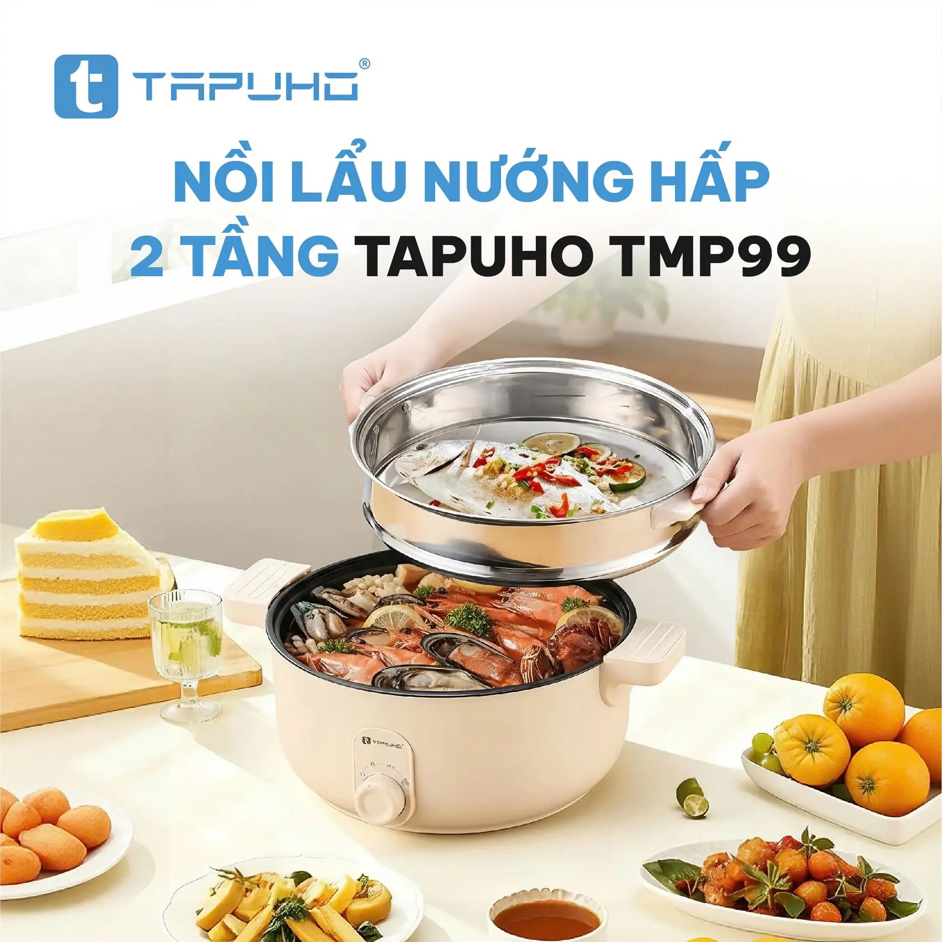 NỒI LẨU NƯỚNG HẤP 2 TẦNG TAPUHO TMP99