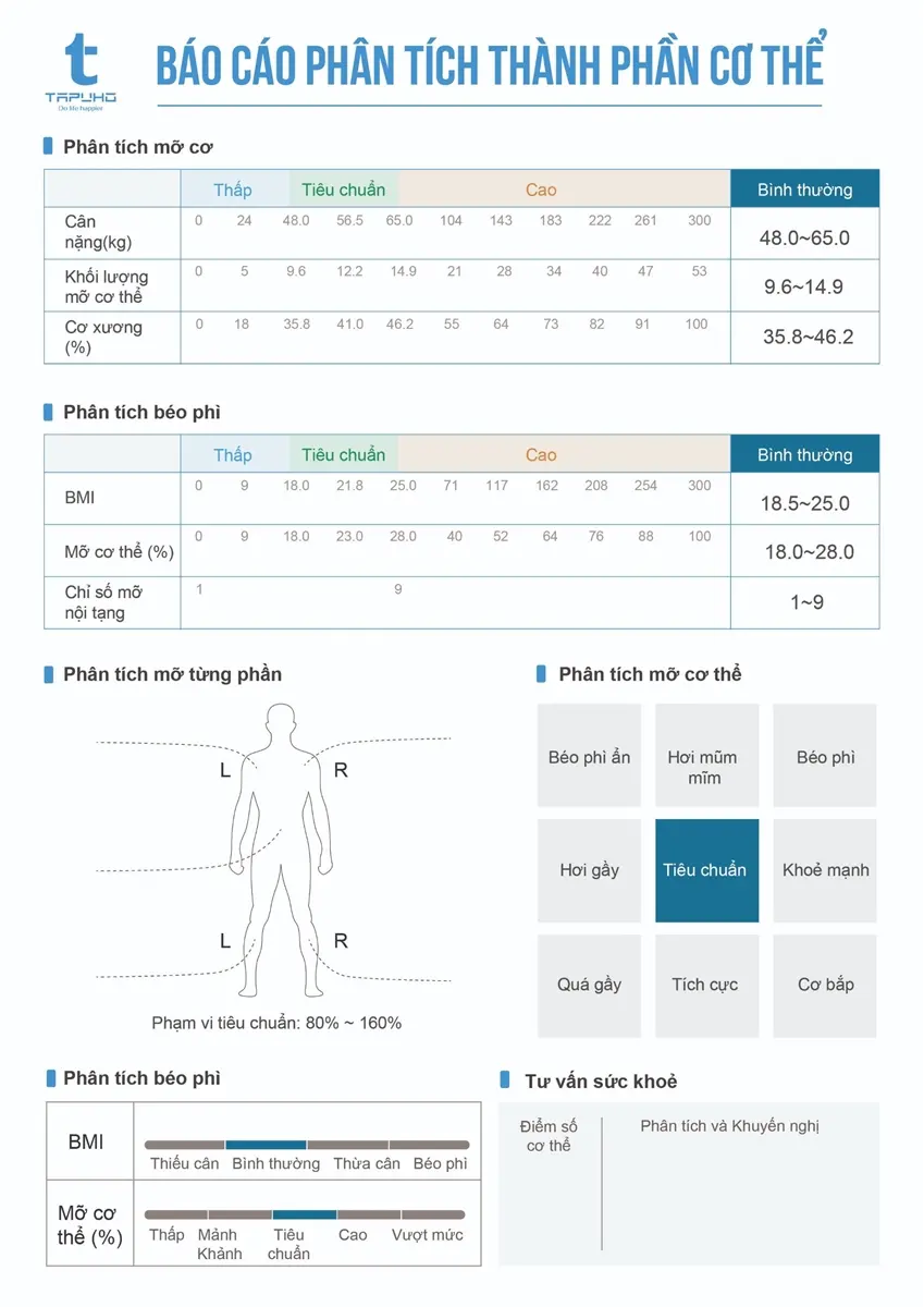Để phân tích thành phần cơ thể cần sử dụng thiết bị phân tích thành phần cơ thể TAPUHO TSB180. Với thiết bị này sẽ giúp bạn biết được chính xác các chỉ số quan trọng của cơ thể để điều chỉnh thói quen hằng ngày, giảm tối đa nguy cơ bệnh tật.