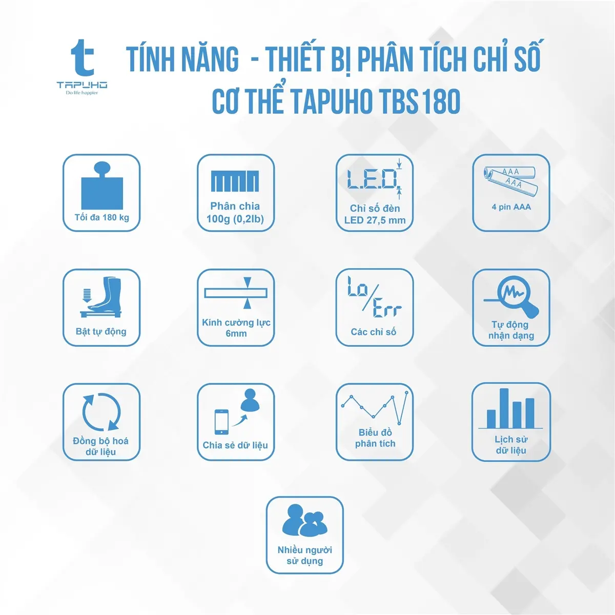 THIẾT BỊ THÔNG MINH PHÂN TÍCH CHỈ SỐ CƠ THỂ TAPUHO TBS180