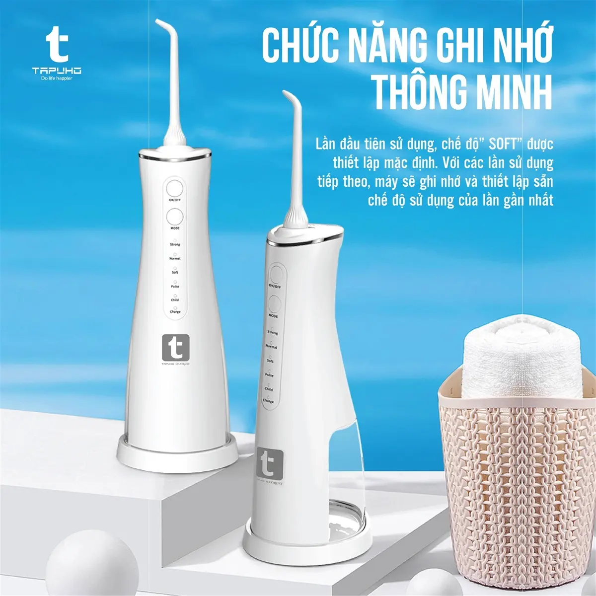 Tăm nước thông minh TAPUHO TWT2024 có chức năng ghi nhớ rất hữu ích. Lần đầu tiên sử dụng, chế độ” SOFT” được thiết lập mặc định. Với các lần sử dụng tiếp theo, máy sẽ ghi nhớ và thiết lập sẵn chế độ sử dụng của lần gần nhất.