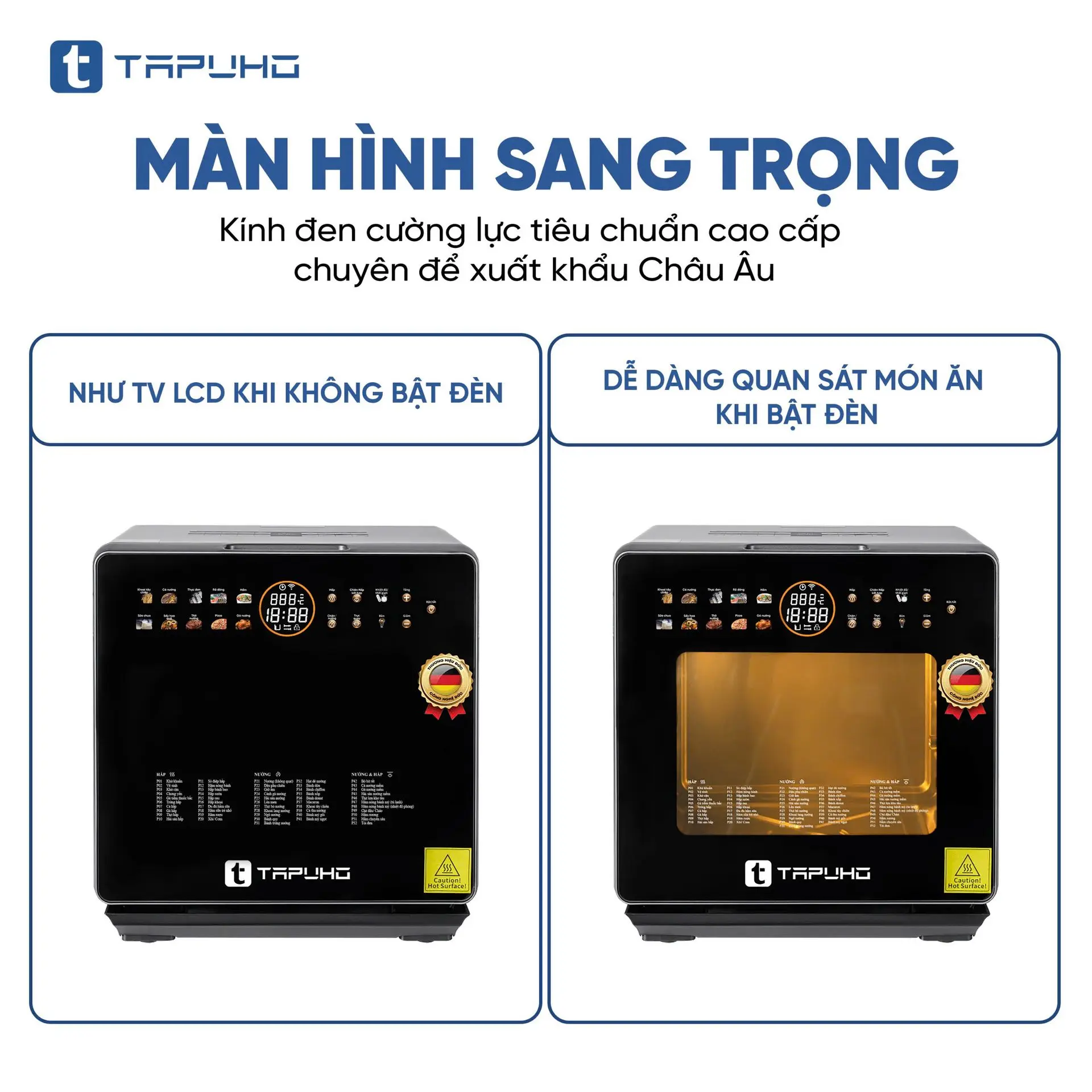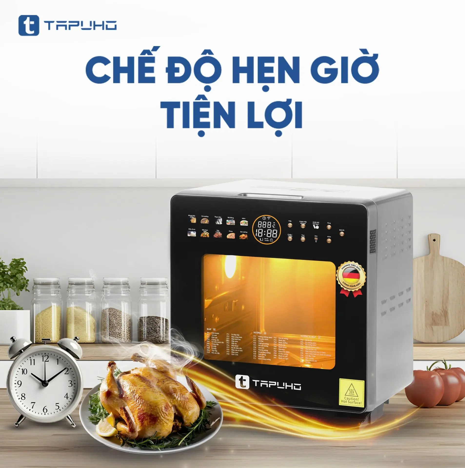 Nỗi lo không gian bếp chật hẹp không đủ không gian để chứa các thiết bị nhà bếp sẽ không còn nữa khi TAPUHO LUXURY STEAM FRYER TSF16 COLOR PLUS có thể sử dụng chức năng tương đương với hơn chục thiết bị nhà bếp khác nhau như : nồi chiên không dầu, nồi hấp, nồi áp suất, máy sấy hoa quả, máy ủ sữa chua, lò nướng, lò vi sóng, máy làm bỏng ngô, máy nướng bánh mỳ, nồi chưng yến, máy làm tỏi đen... và đặc biệt với tính năng đa dạng như vậy sẽ giúp chúng ta tiết kiệm được rất nhiều chi phí mua sắm, thời gian vệ sinh bảo dưỡng.