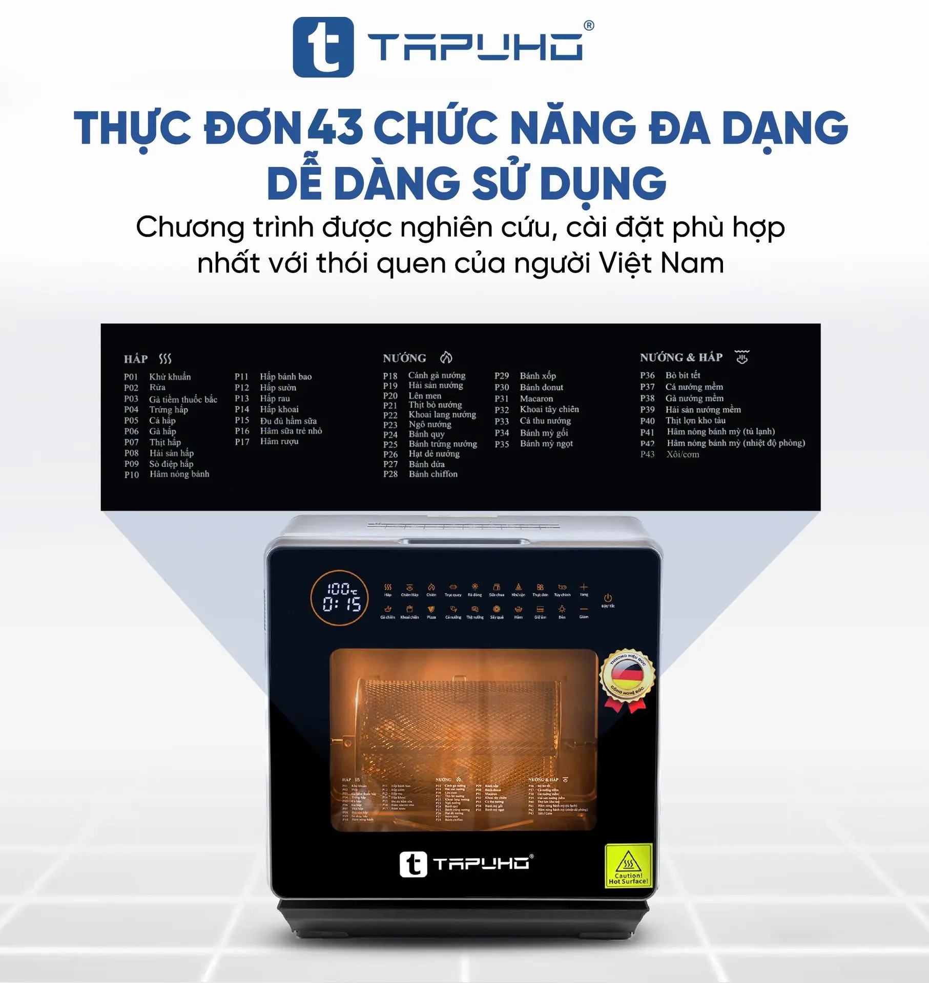 TAPUHO LUXURY STEAM FRYER TSF16 SmartX là sản phẩm nồi chiên hơi nước mới nhất của TAPUHO - thương hiệu gia dụng cao cấp đến từ Đức. Đây là dòng sản phẩm mang tính đột phá, bùng nổ công nghệ với sự kết hợp giữa nồi chiên không dầu (công nghệ rapid air) và nồi hấp (công nghệ hơi nước siêu nhiệt steam pro) mang đến sự tiện lợi cho khách hàng, ngoài ra nó còn là sự kết hợp 4 tính năng trong 1, đó là tính năng Hấp - Chiên không dầu - Chiên hấp kết hợp - Hầm và đặc biệt có những chức năng chỉ có trên TAPUHO LUXURY STEAM FRYER TSF16 SmartX mà chưa từng có trên bất kỳ sản phẩm cùng loại nào trên thị trường.