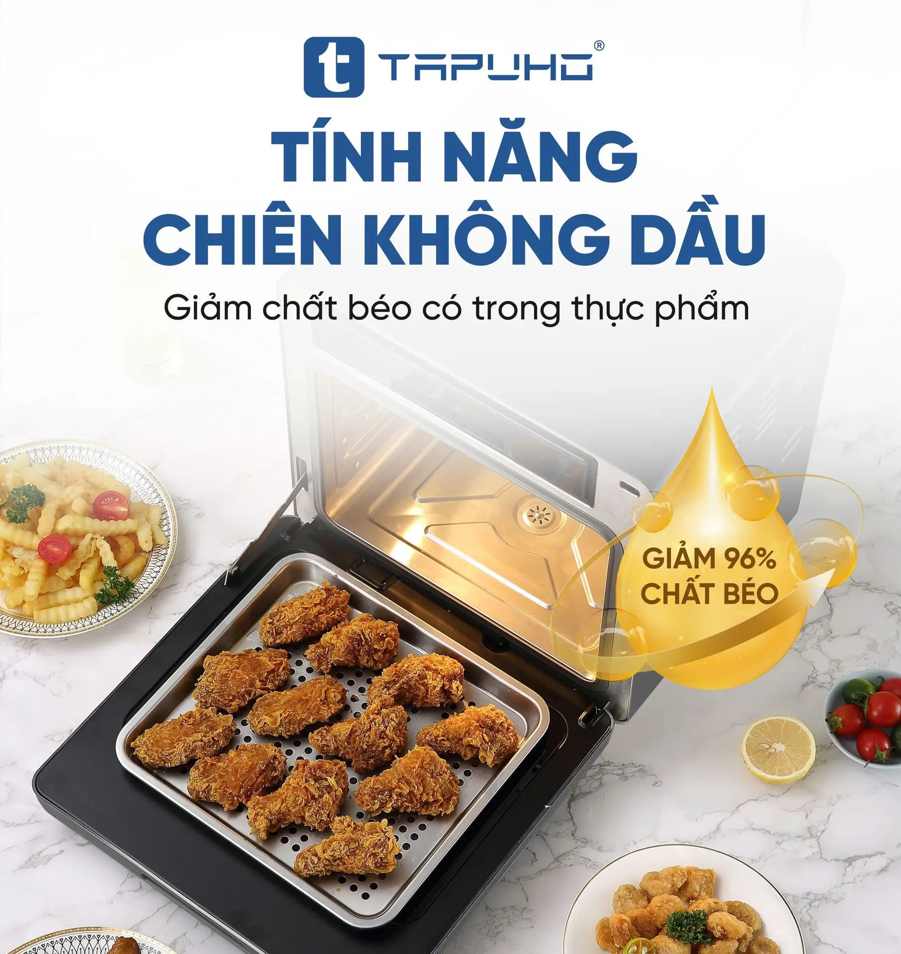 5.TÍNH NĂNG CHIÊN KHÔNG DẦU - GIẢM 96% LƯỢNG CHẤT BÉO CÓ TRONG THỰC PHẨM